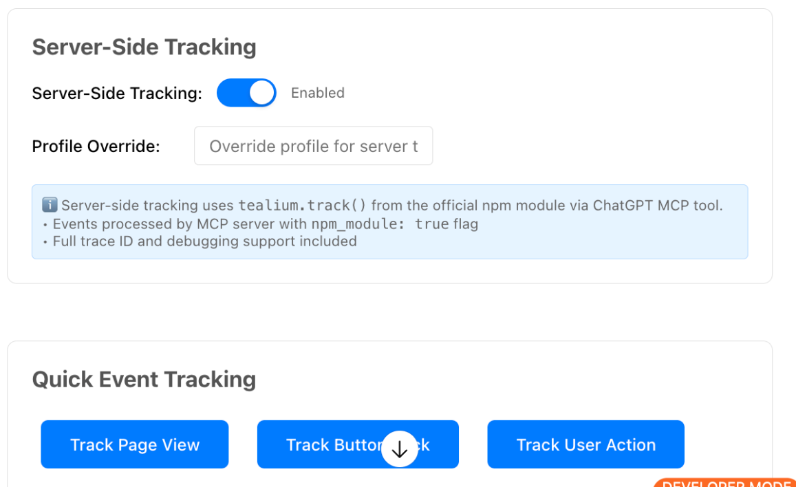 Tealiumは、ブラウザ、ウィジェット、カスタムChatGPTインターフェースでのアプリのような体験のためのデータ基盤を提供します。これは、プラットフォーム全体で一貫したデータ収集と訪問ID管理をサポートします。