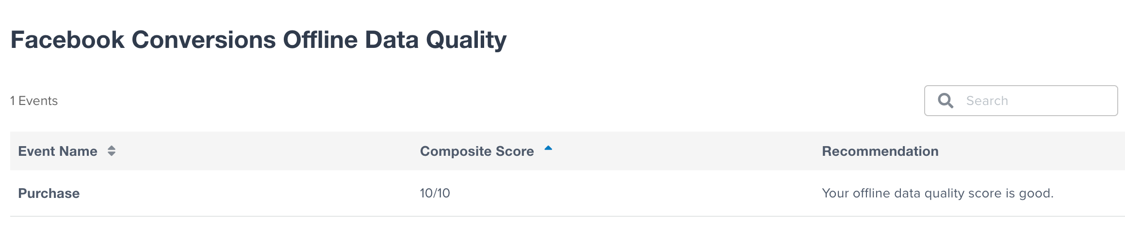 Each event type has an event match quality score ranging from 1 to 10. The score indicates how well the customer information in those events matches existing Meta users.
