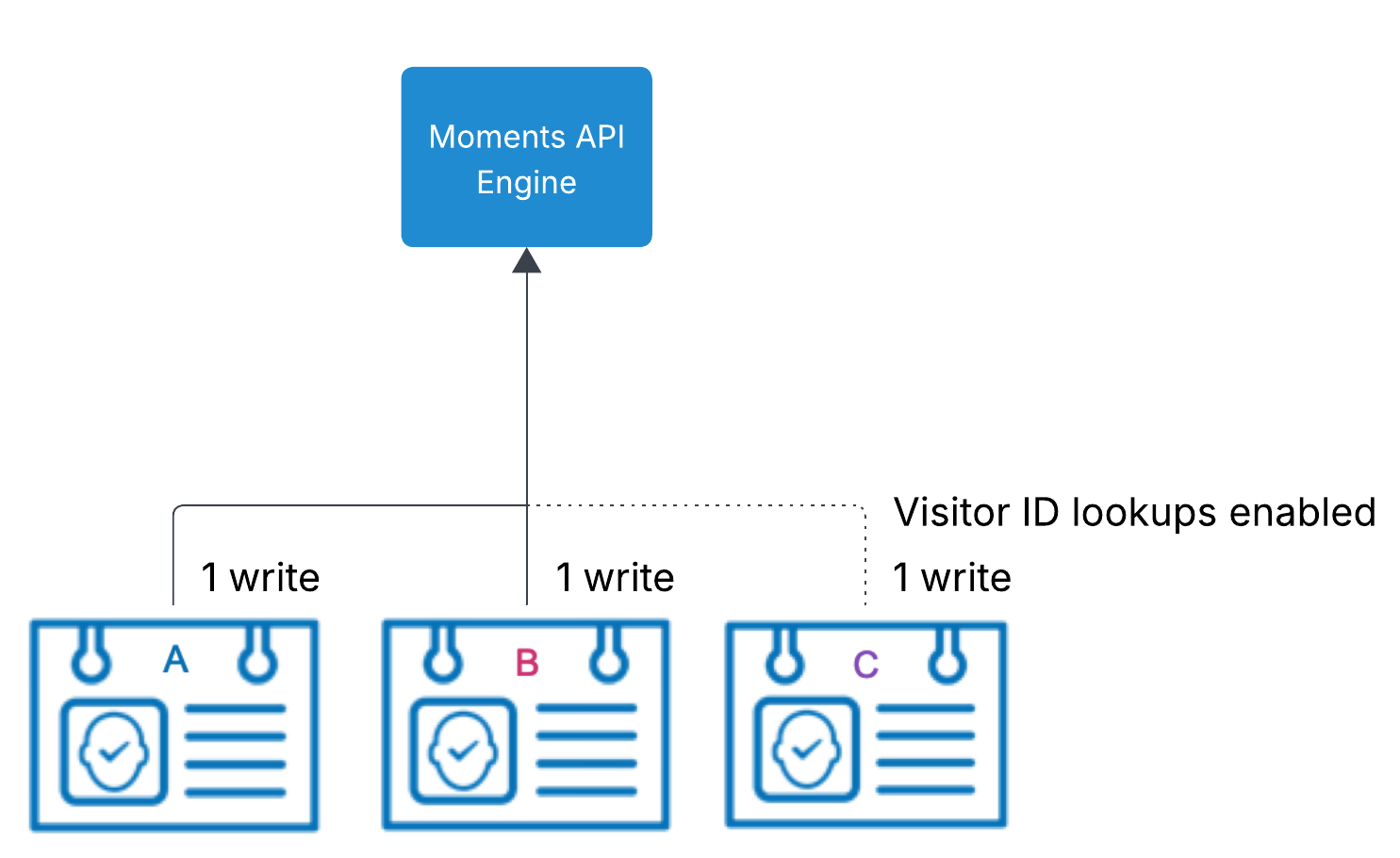 - If visitor ID lookups are disabled, 2 writes (2 visitor profiles × 1 engine).