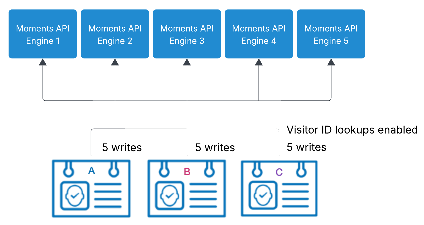 - If visitor ID lookups are disabled, 10 writes (2 visitor profiles × 5 engines).